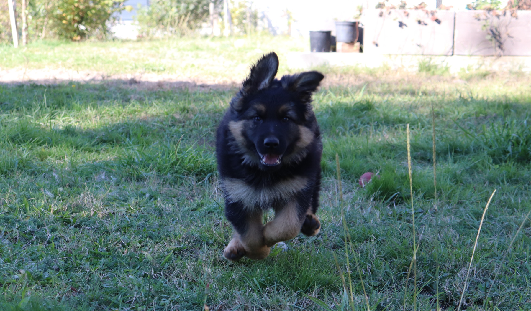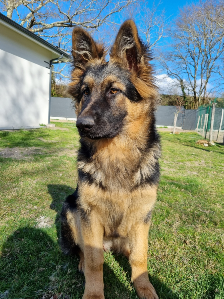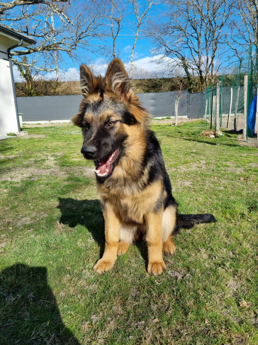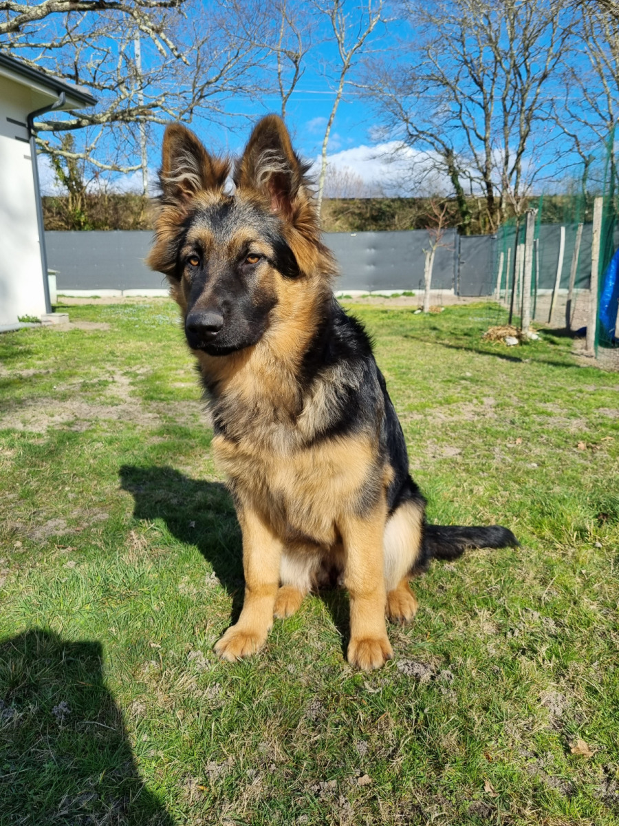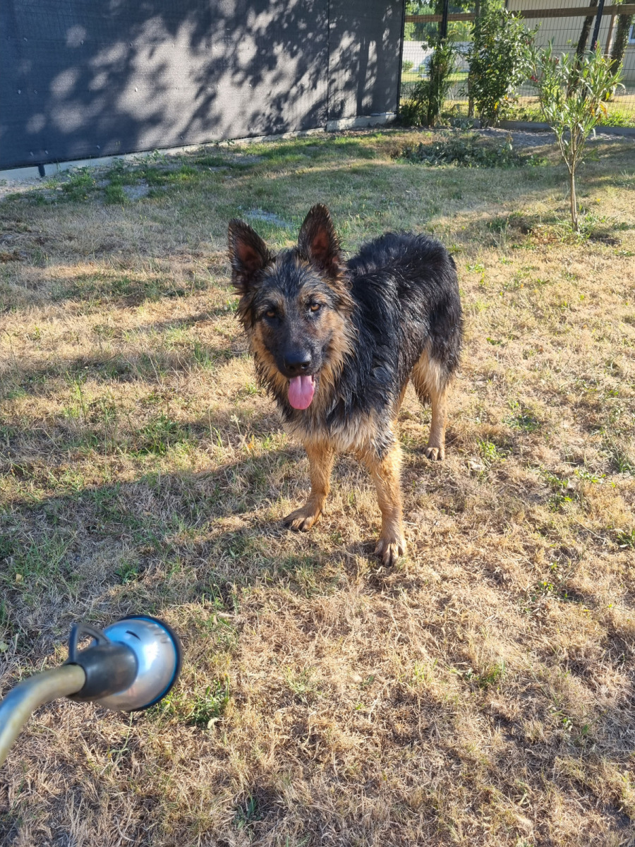 Souka possède un magnifique pelage noir et feu, une belle tête féminine, des oreilles bien développées et une forte ossature.