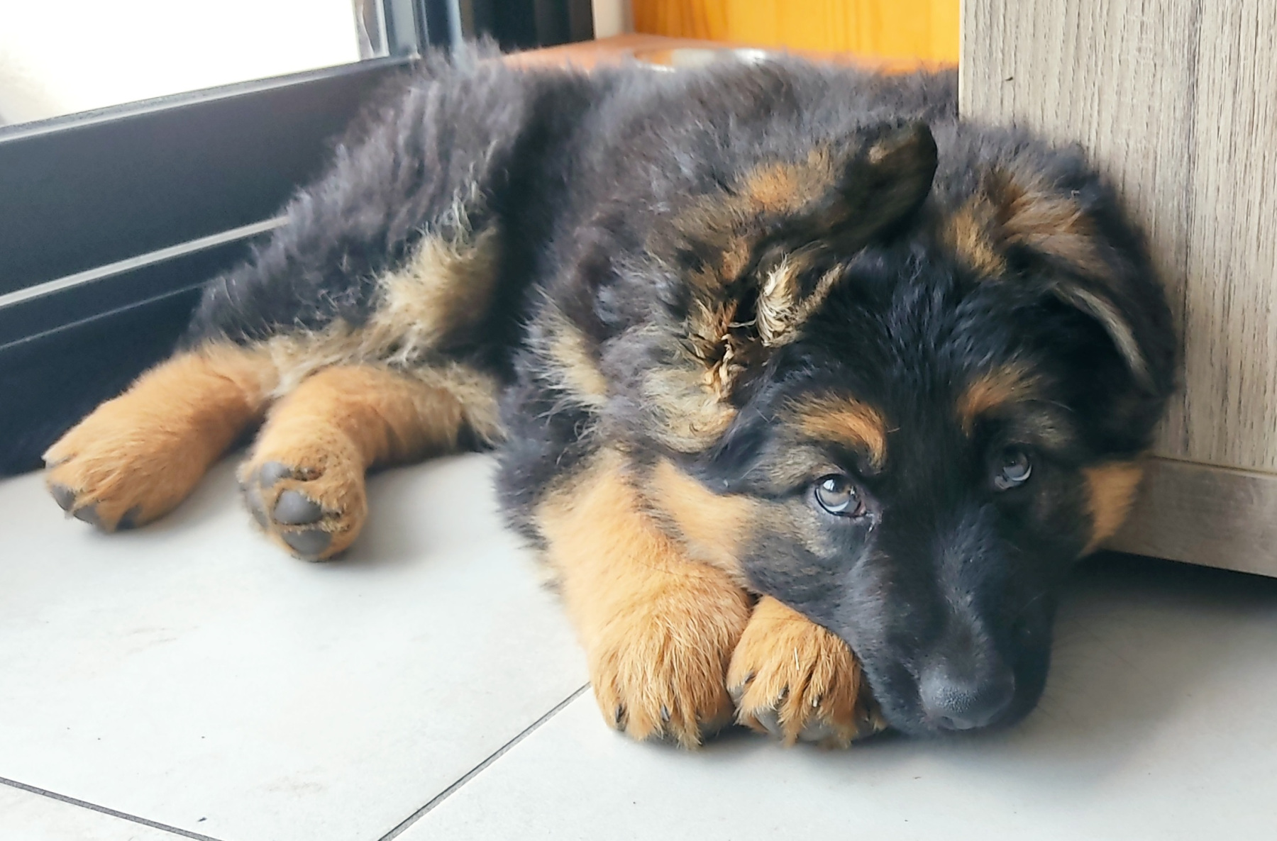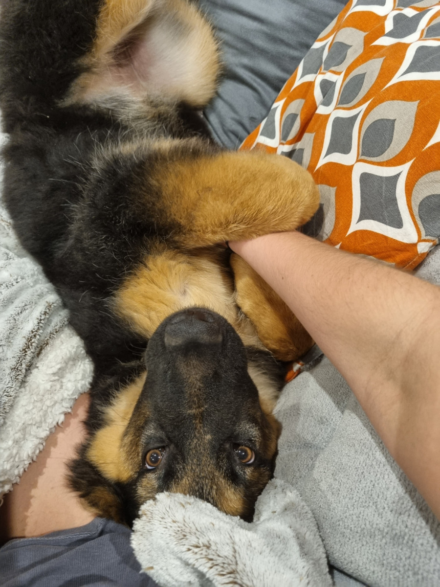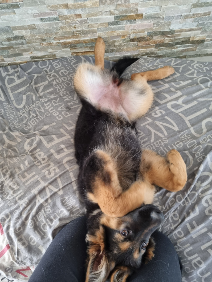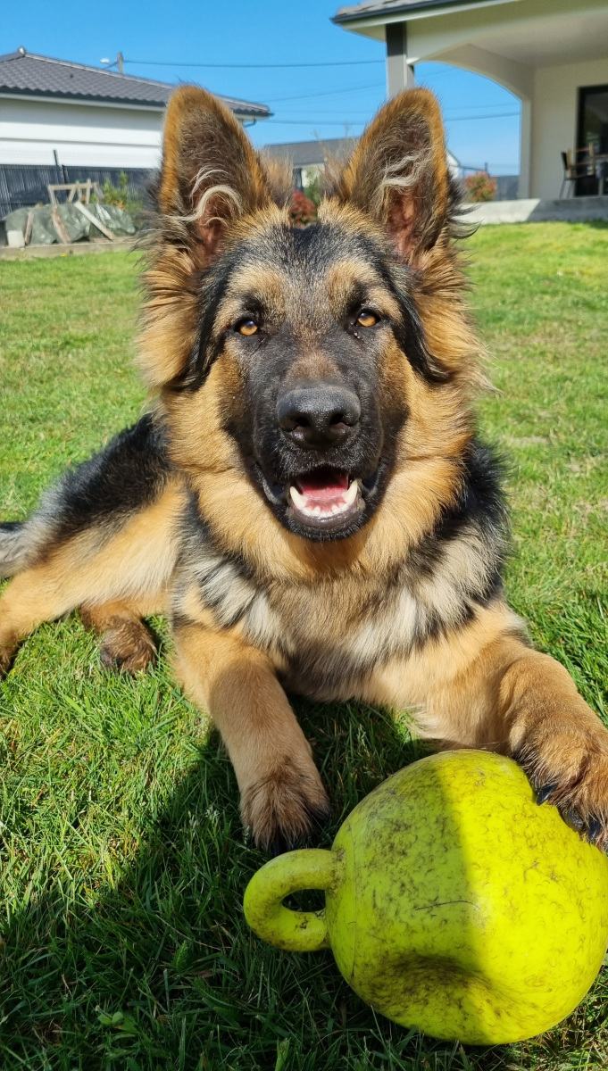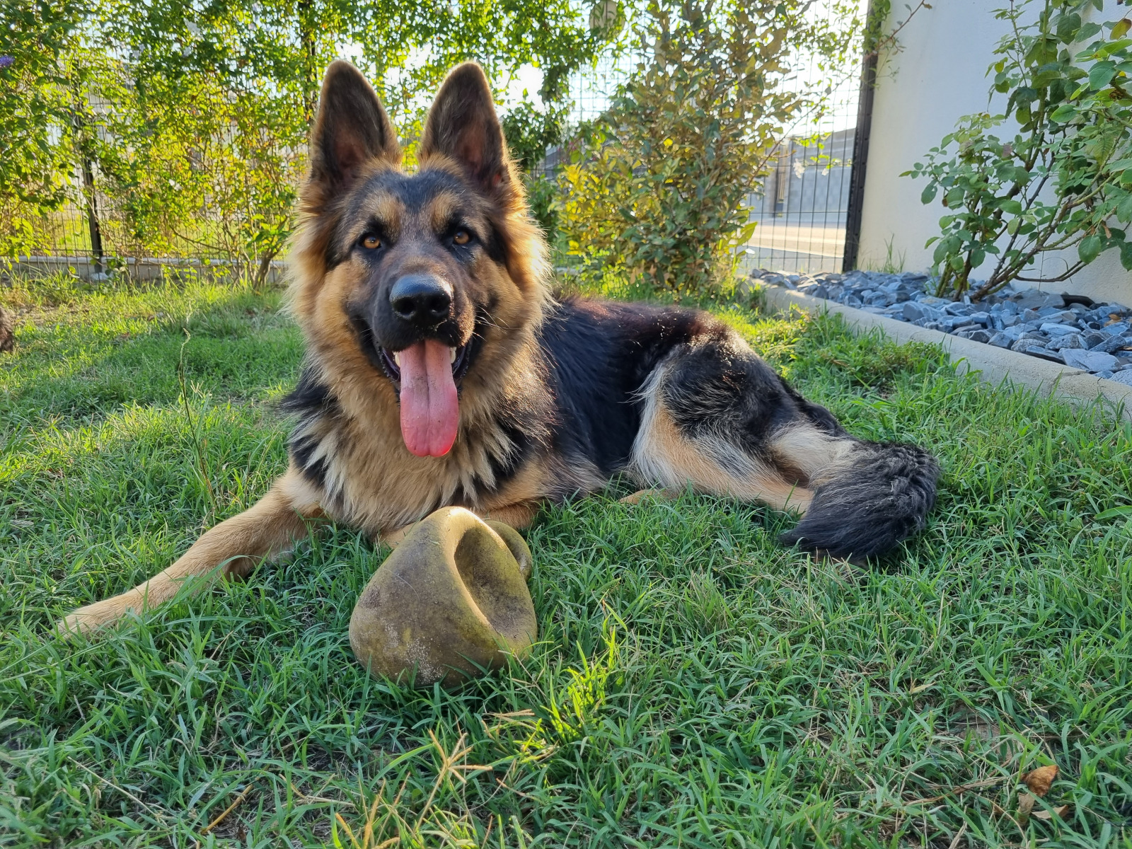 Souka possède un magnifique pelage noir et feu, une belle tête féminine, des oreilles bien développées et une forte ossature.