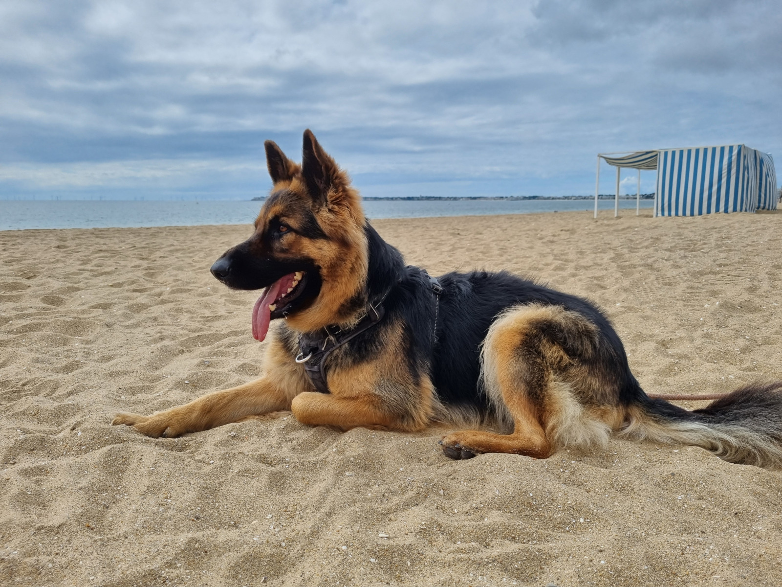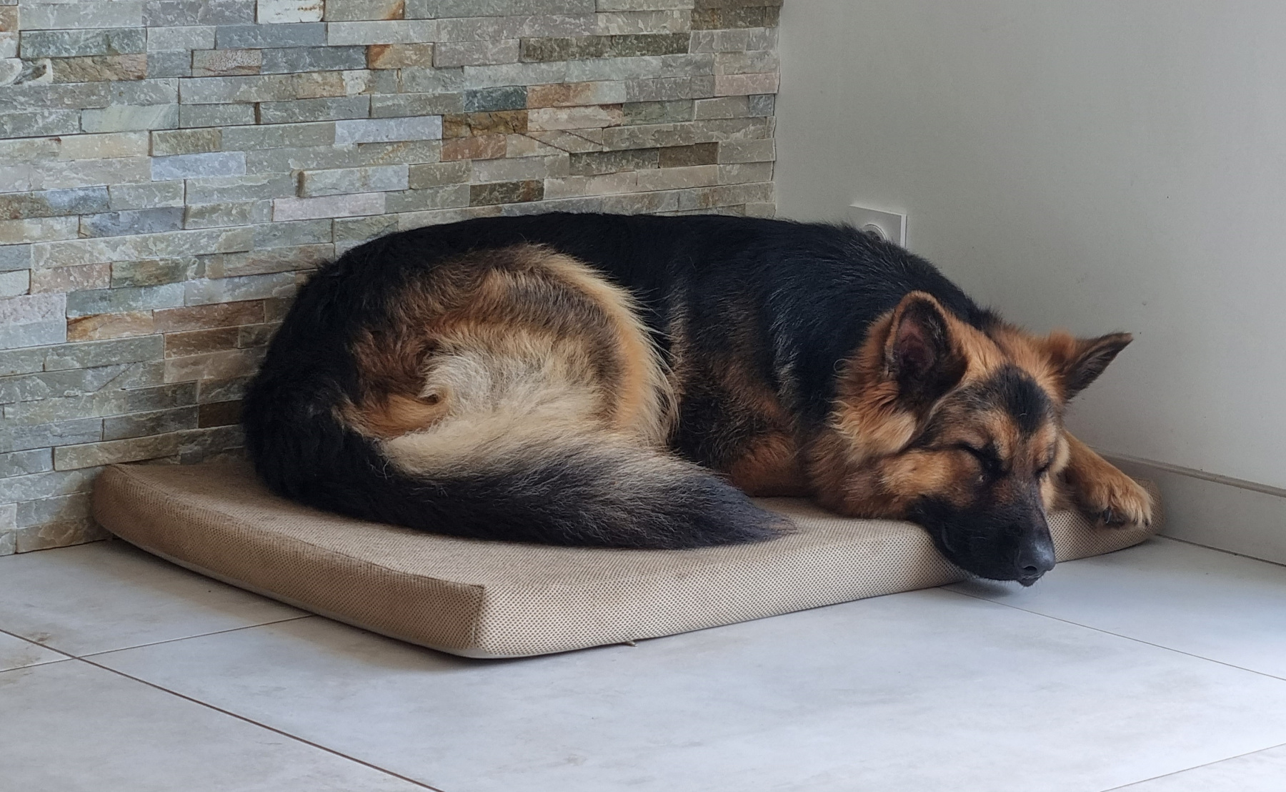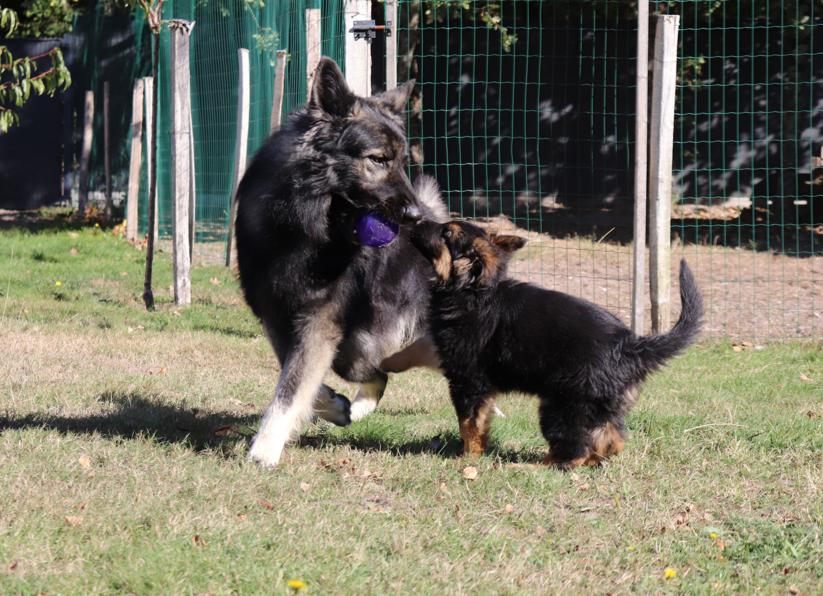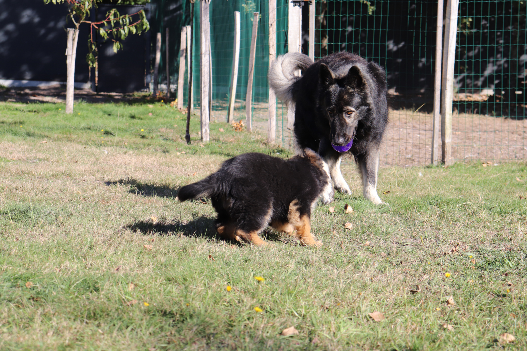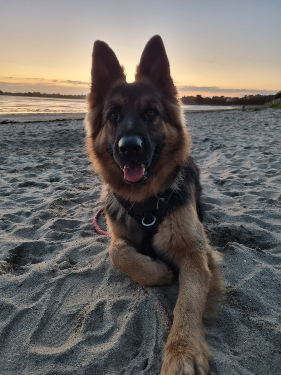 Souka possède un magnifique pelage noir et feu, une belle tête féminine, des oreilles bien développées et une forte ossature.