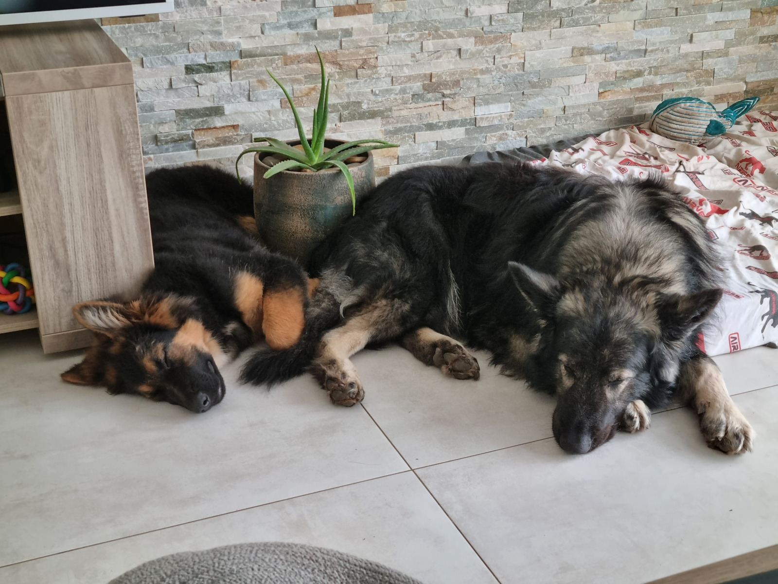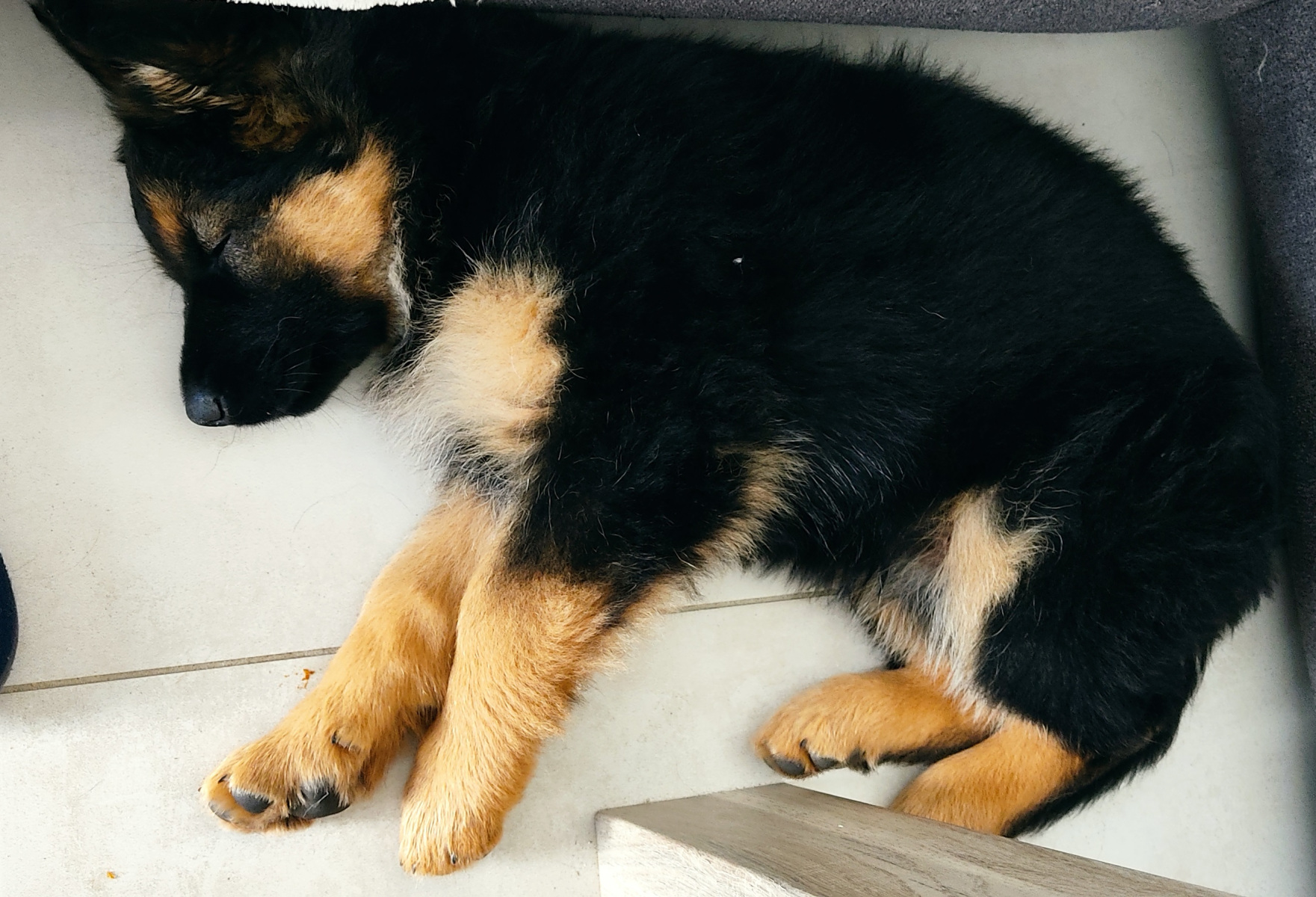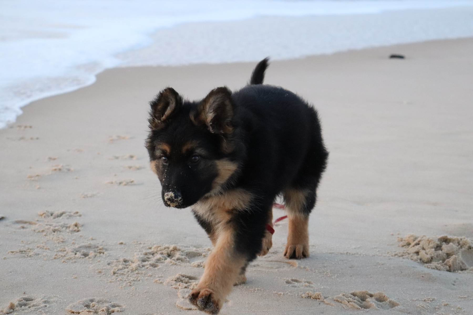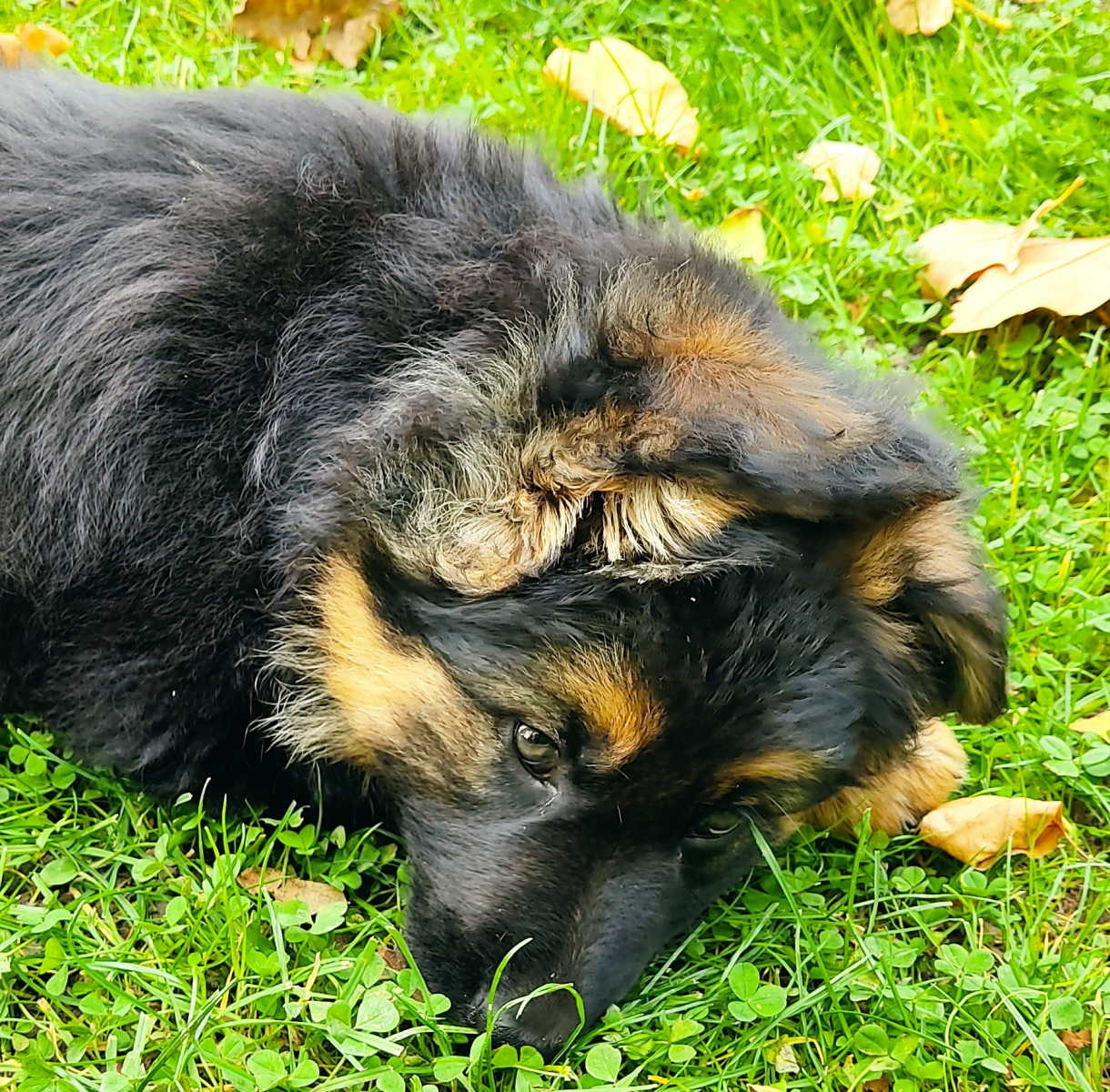 Souka possède un magnifique pelage noir et feu, une belle tête féminine, des oreilles bien développées et une forte ossature.