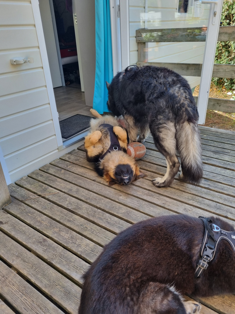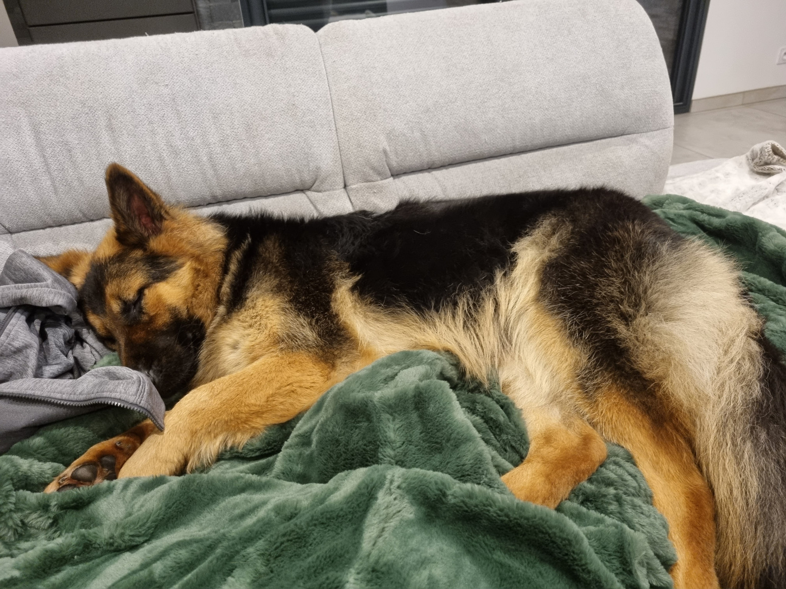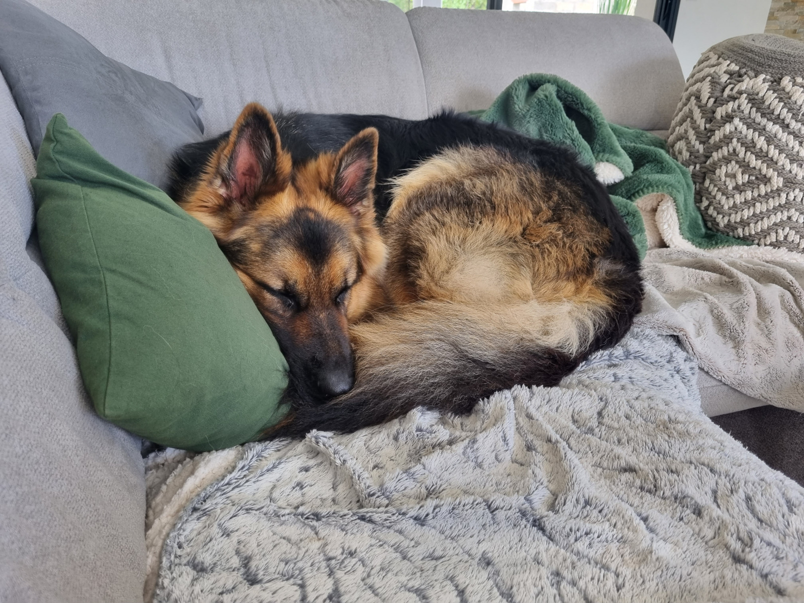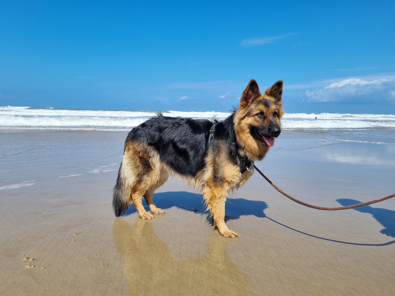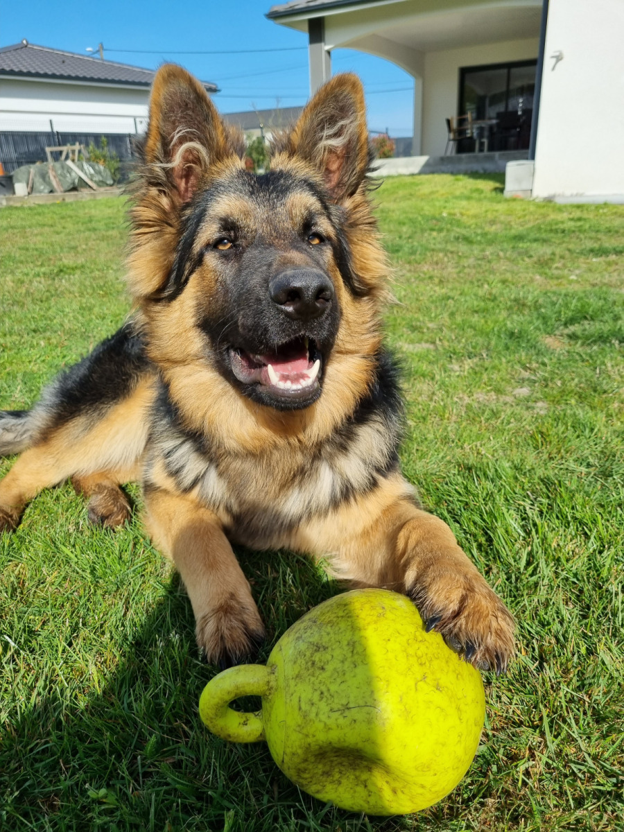 Souka possède un magnifique pelage noir et feu, une belle tête féminine, des oreilles bien développées et une forte ossature.